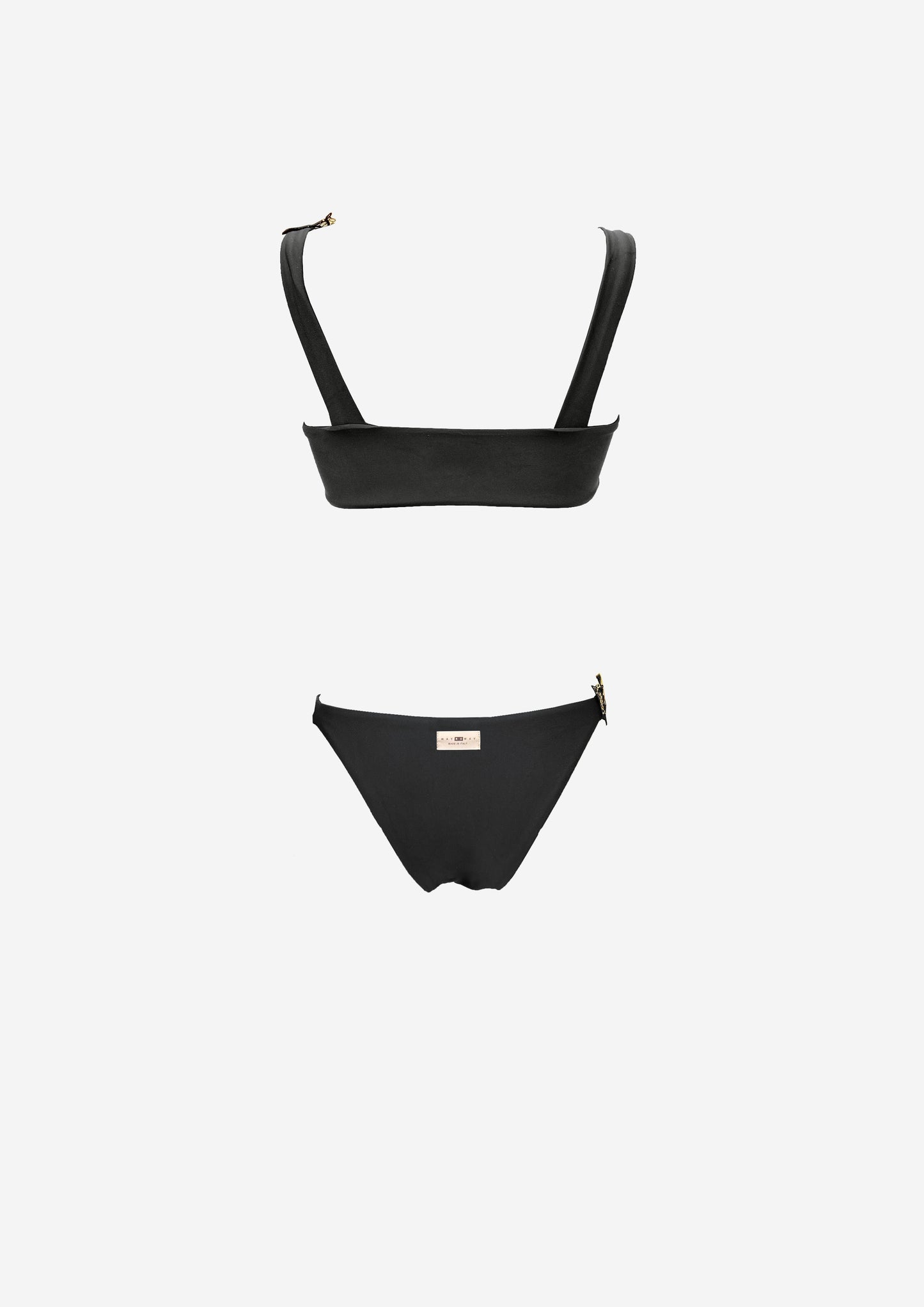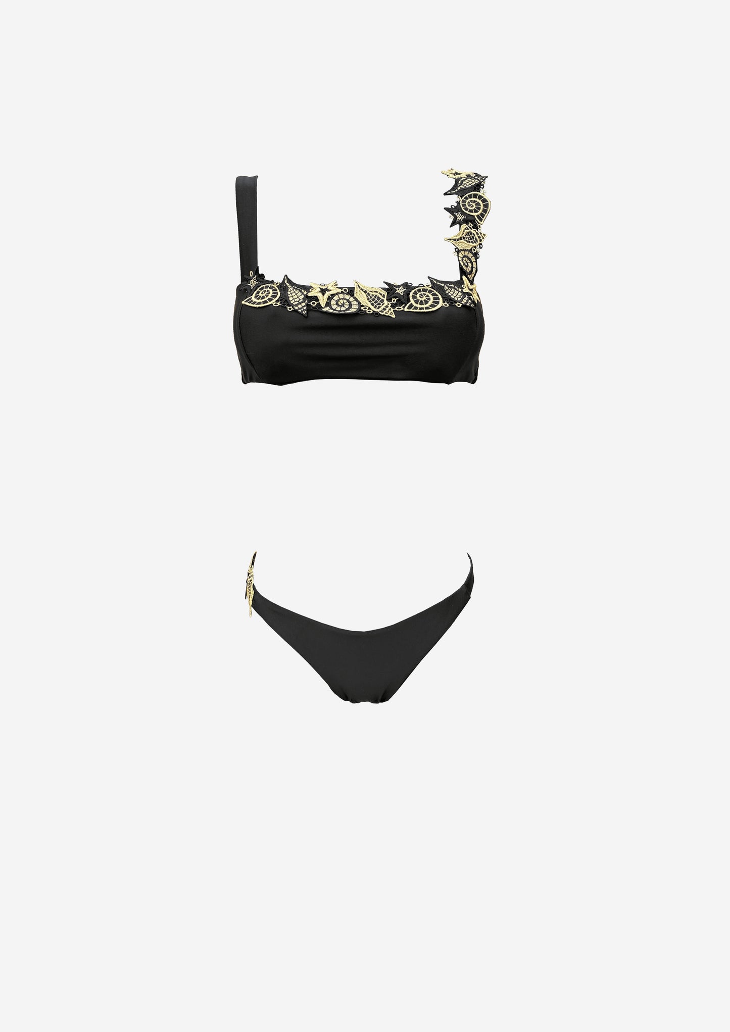 Selene, Made in Italy, black bikini with matching black / gold marine embroidery.