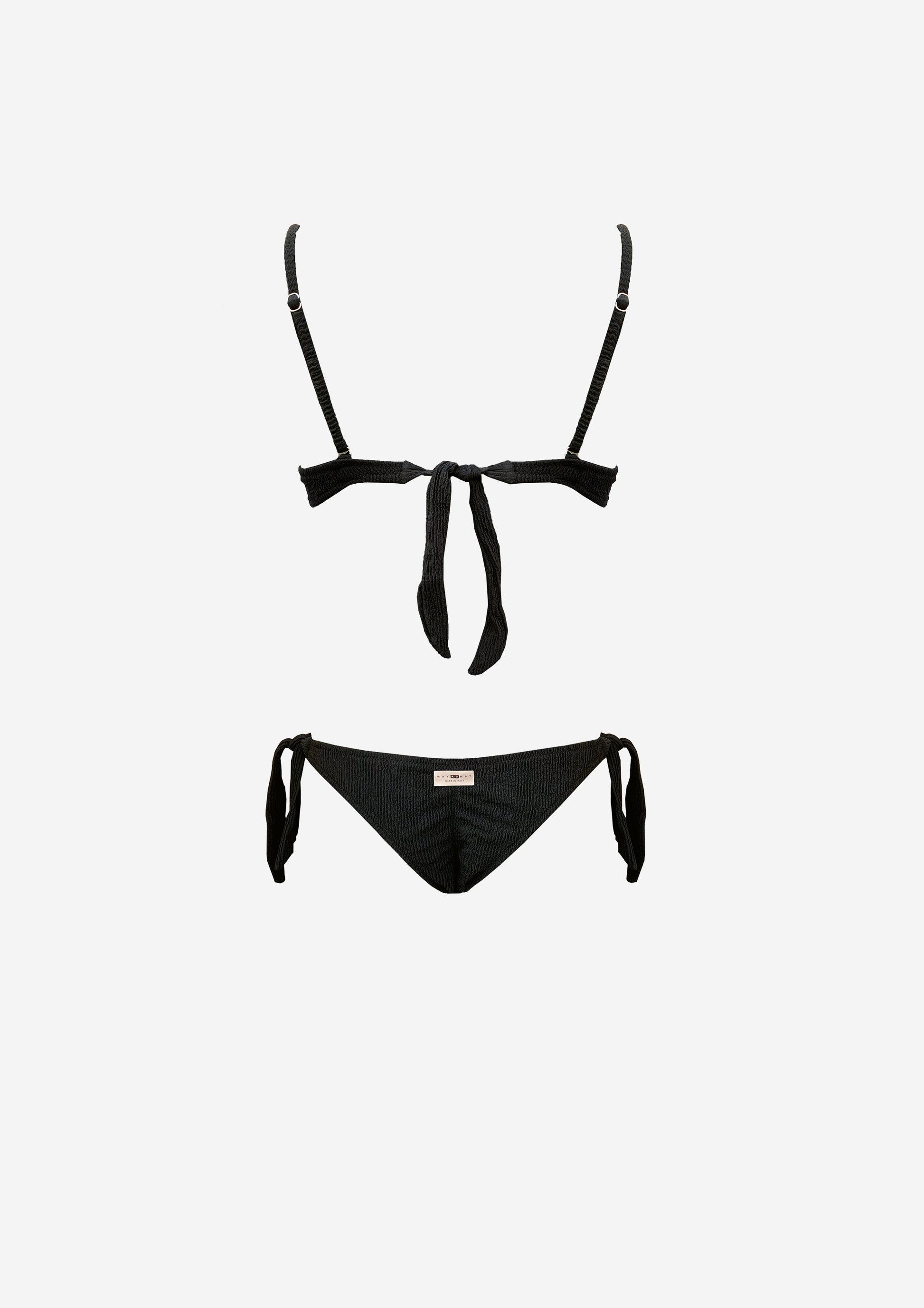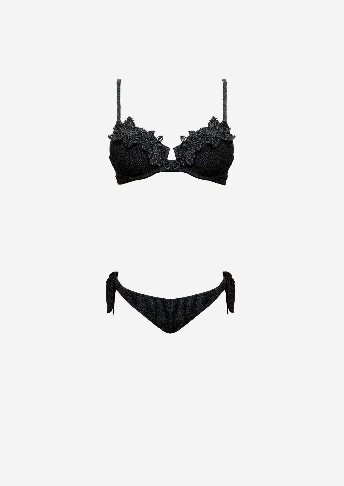 Emily, Made in Italy, bikini nero con ricamo marino in lurex nero.